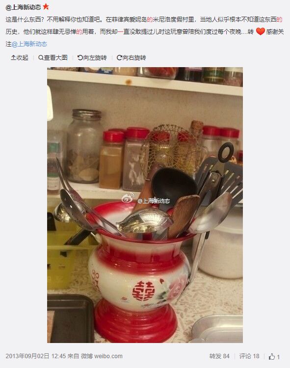 毕竟,几年前,网上还流传过一张图,说有菲律宾当地人,把中国痰盂用作厨具收纳罐。