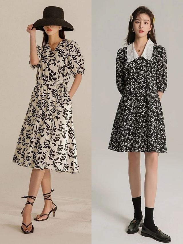 如果选择的是连衣裙可以适当地放宽,因为连衣裙没有上半身的搭配,上下的颜色都是一致的,可挑选带有印花的或者是其他时尚元素的,比如格纹或者是波点。