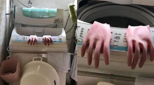 3.橡胶手套家里常备,在网上看中几款手套,打算对比一下买家秀,抉择一下,买哪一家的比较好!翻了翻评论,这是什么洗衣机里爬出女鬼了?你看着可真的是瘆得慌!不对呀,这好像是手套,这放的可真的是刚刚好,不知道的还真的吓一跳!