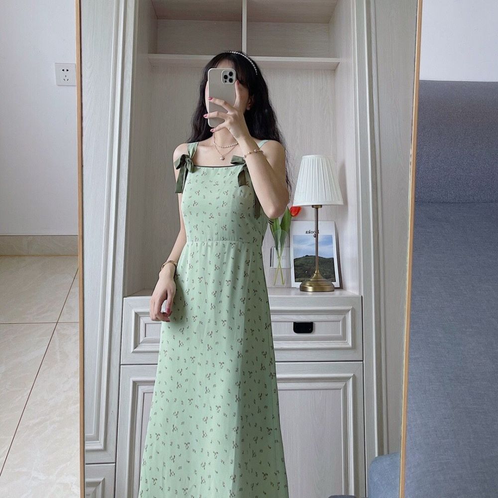 混纺布 有里衬 这款浅绿色的吊带裙裙真的太戳啦 肩膀处蝴蝶结可拆卸 侧面隐拉 花色美呆啦 浅浅的色调和夏天也很搭通勤度假都很可 自带滤镜滴仙女裙 太推荐 sm