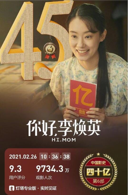 你好,李焕英票房破45亿