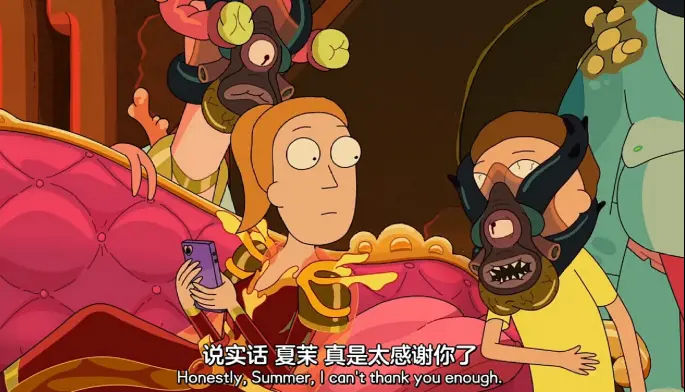 后来,瑞克和莫蒂带着夏茉来到这颗星球。瑞克和莫蒂没有防备,于是被寄生了。而夏茉因为嘴里叼着根牙签,抱脸虫寄生不了,所以保留了自己的意识。夏茉鼓动抱脸虫们放弃半小时爆炸的传统,为自己而活,为了文明的发展建设而贡献自己的力量。抱脸虫们欣然接受,还把夏茉奉为女王。
