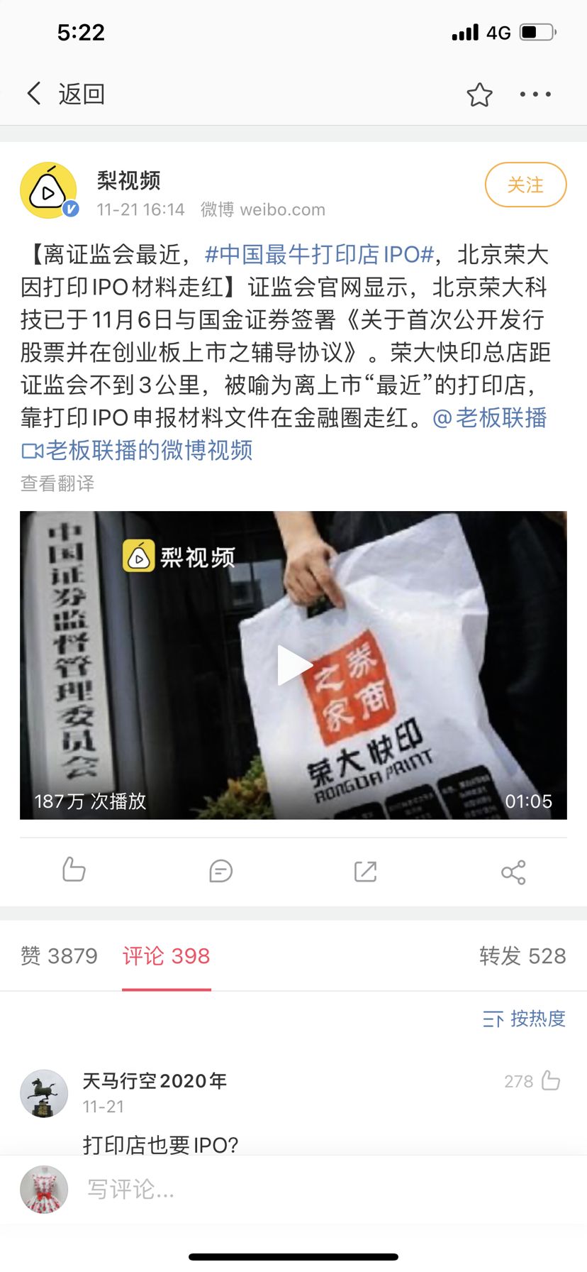 分享个有趣的ipo【离证监会最近、#中国最牛打印店申请上市#!】