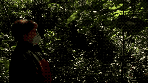 研究者 Marina Hurley 和同事在接触金皮树时要带医用口罩和防护手套。