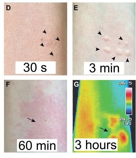 接触金皮树后皮肤随时间的反应。图片来源:(DOI)10.1126/sciadv.abb8828
