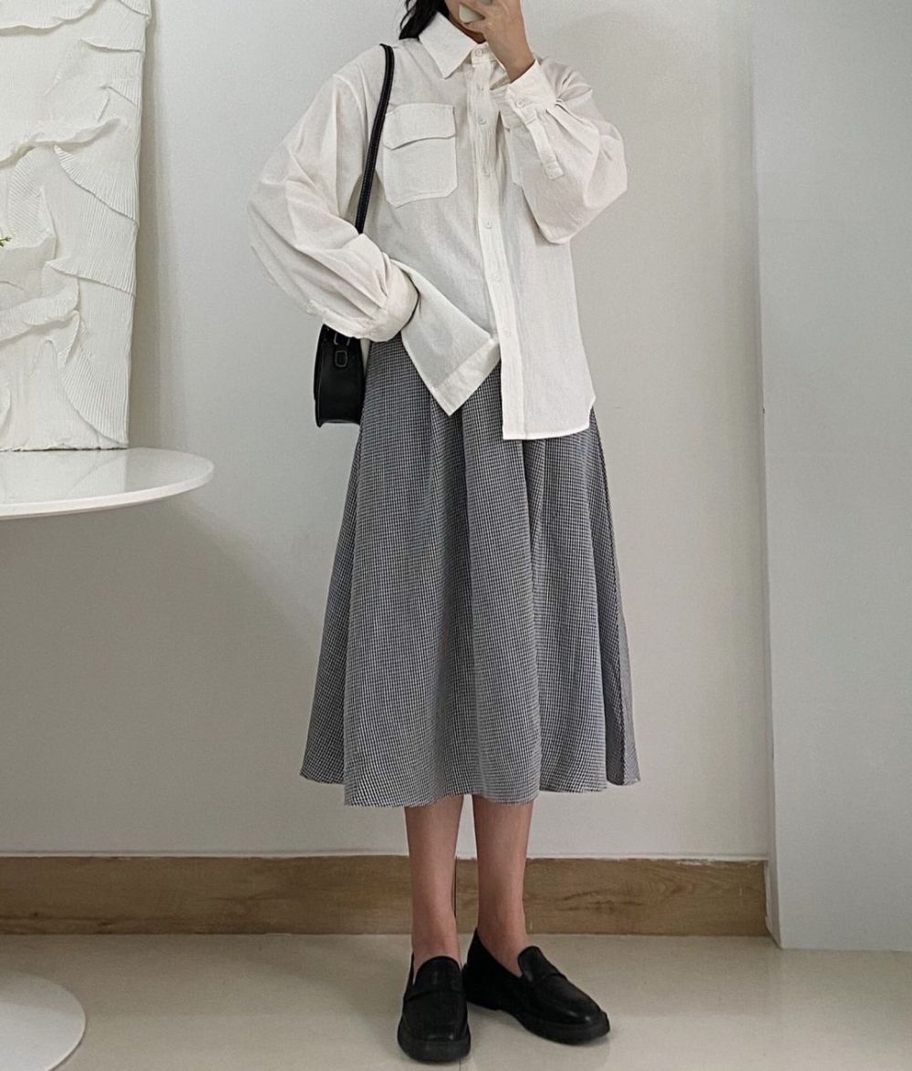 一套乖巧校园感 衬衣棉麻料 很百搭的单品 半裙也文艺清新