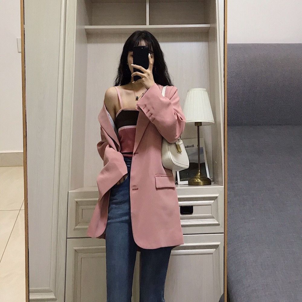 高品质西装料 这个季节一定不能少了纯纯的西装哦 颜色版型很正 长度包臀 袖口四粒排扣 冒着粉色少女心的一款哦