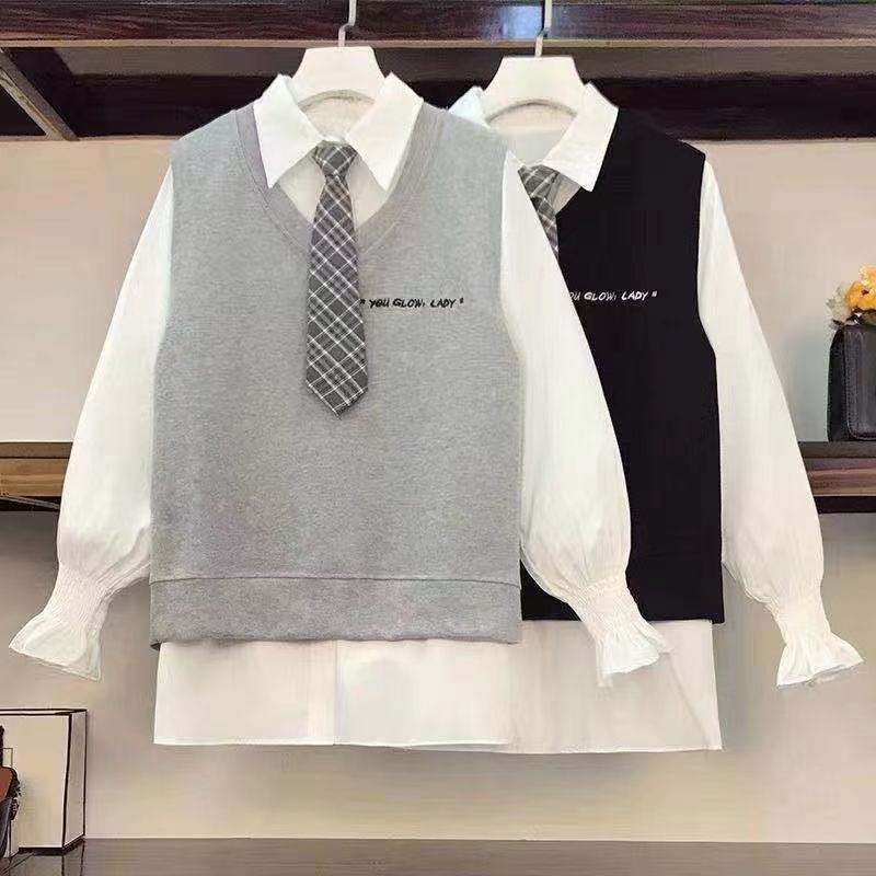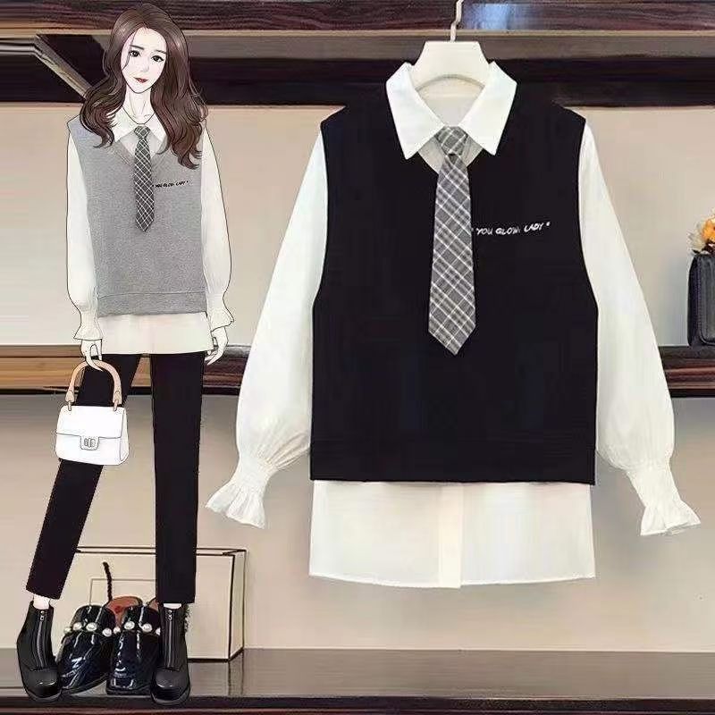 三件套马甲+长袖t恤+领带 新款百搭简约字母款式 均码