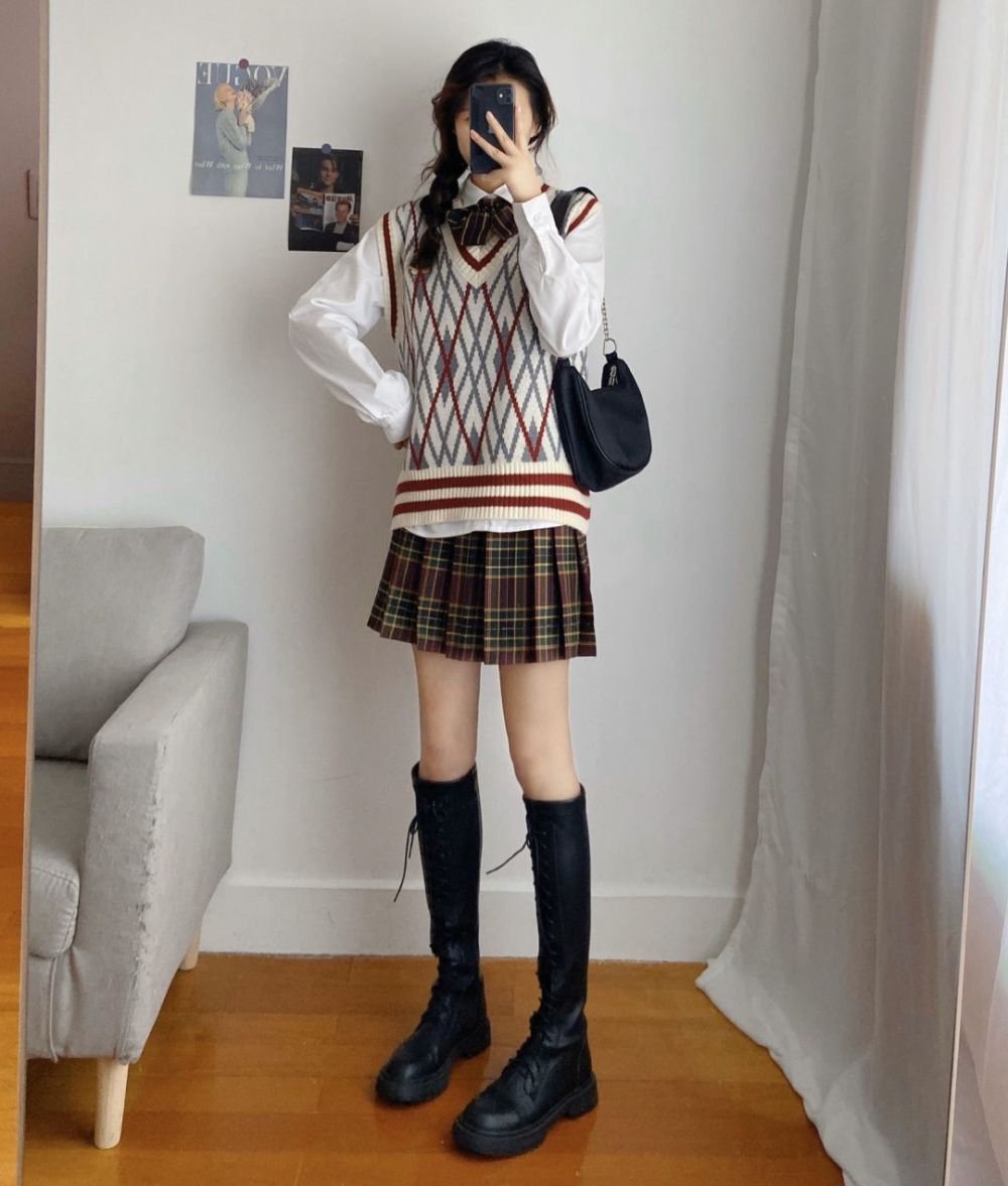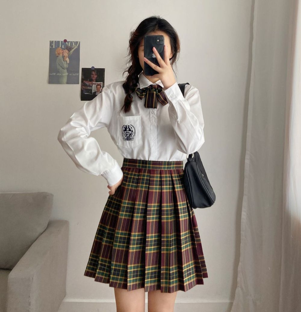 四件套我太爱了!!! 白色衬衫➕领结➕马甲➕百褶裙 都可以分开搭配哦 非常百搭的单品 颜色也巨好看